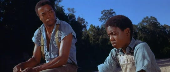 As the police are taking Nathan away, an evil white deputy shoots doggo Sounder in the face. Unfortunately, the film doesn’t then morph into John Wick (2014). Instead, Nathan is sent to a prison labor camp, leaving his wife Rebecca (Cicely Tyson) and the kids to do all the sharecropping without him. As David Lee later puts it: